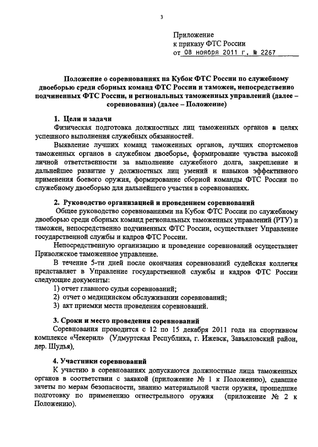 ПРИКАЗ ФТС РФ от 08.11.2011 N 2267