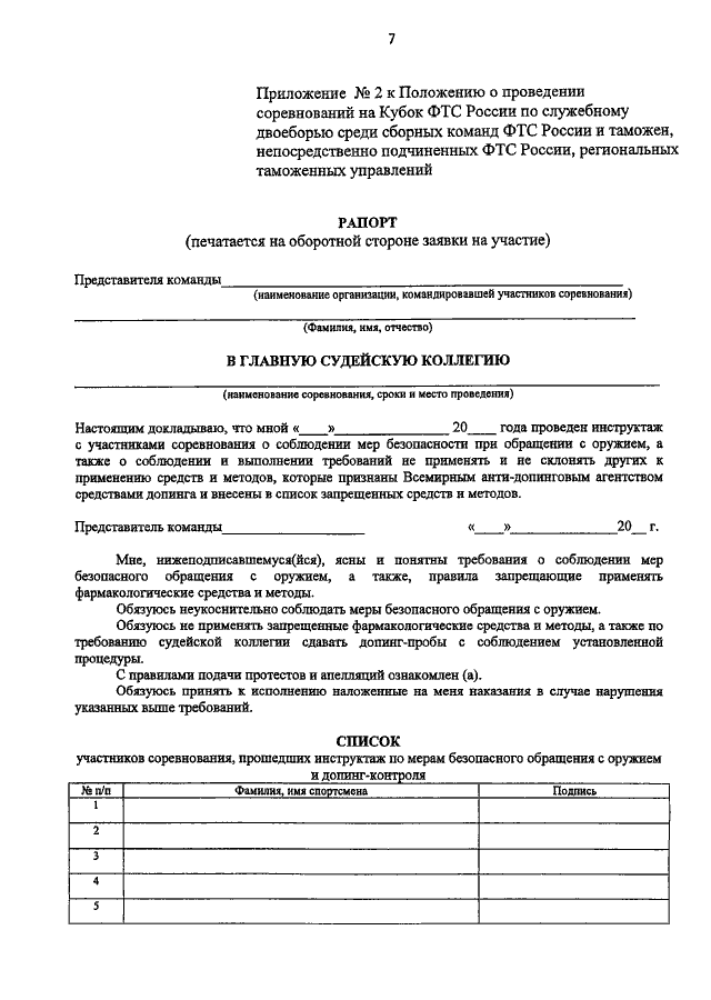 СЛУЖЕБНОМУ ДВОЕБОРЬЮ СРЕДИ СБОРНЫХ КОМАНД ФТС РОССИИ И ТАМОЖЕН,