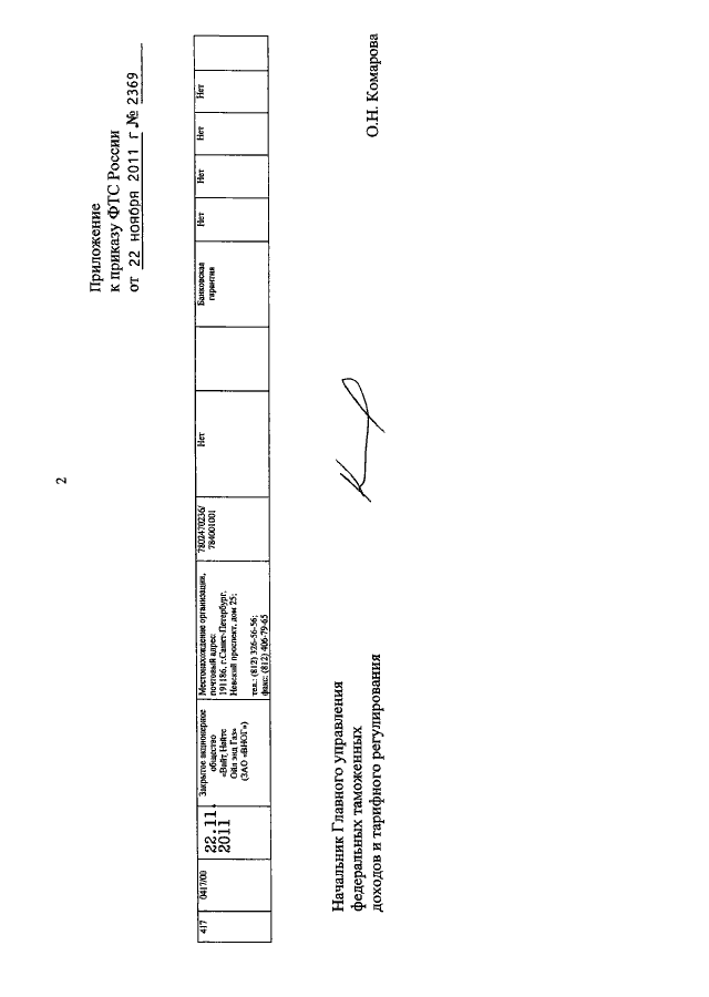 ПРИКАЗ ФТС РФ от 22.11.2011 N 2369