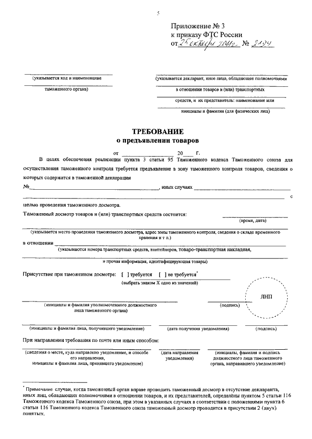 ПРИКАЗ ФТС РФ от 25.10.2011 N 2199