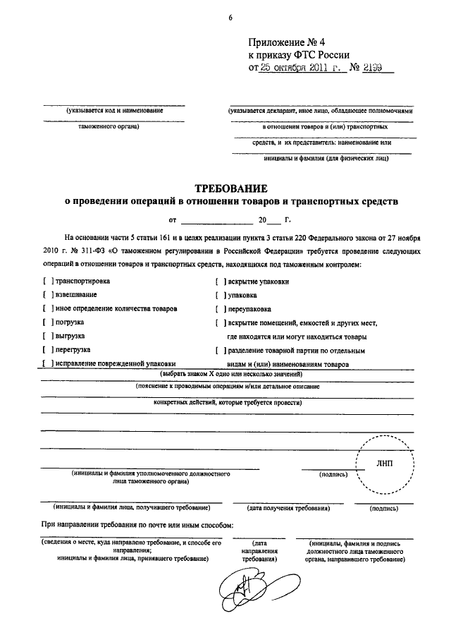 ПРИКАЗ ФТС РФ от 25.10.2011 N 2199