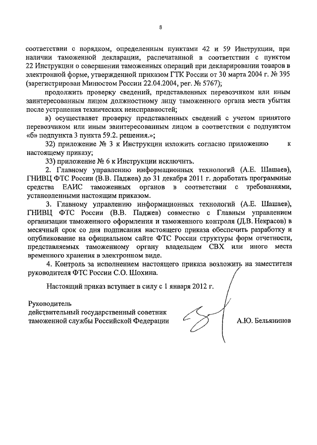 ПРИКАЗ ФТС РФ от 22.12.2011 N 2604