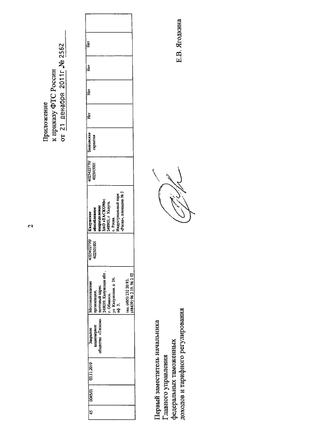 ПРИКАЗ ФТС РФ от 21.12.2011 N 2562