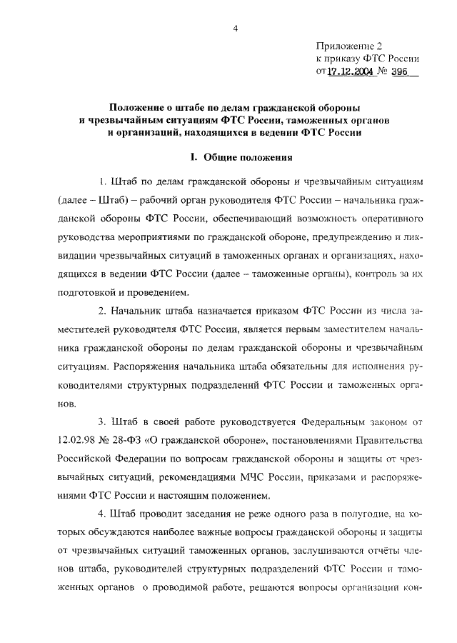 ПРИКАЗ ФТС РФ от 17.12.2004 N 396