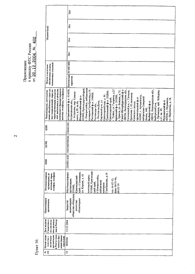 ПРИКАЗ ФТС РФ от 20.12.2004 N 402