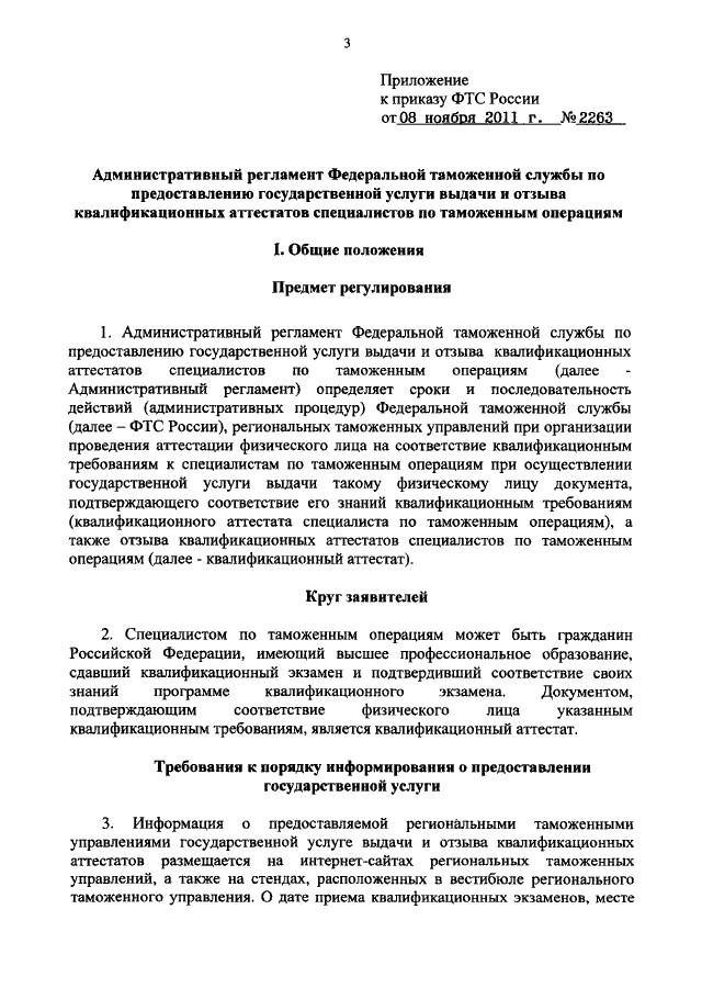 ПРИКАЗ ФТС РФ от 08.11.2011 N 2263