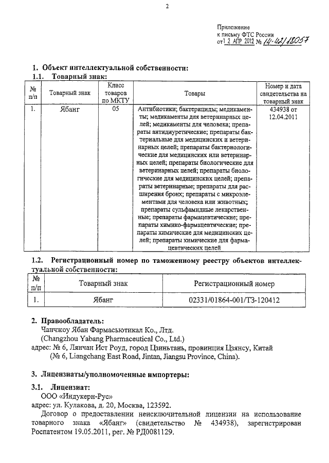 ПИСЬМО ФТС РФ от 12.04.2012 N 14-42/18057