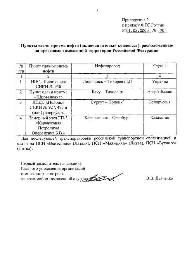 ПРИКАЗ ФТС РФ от 01.02.2005 N 70
