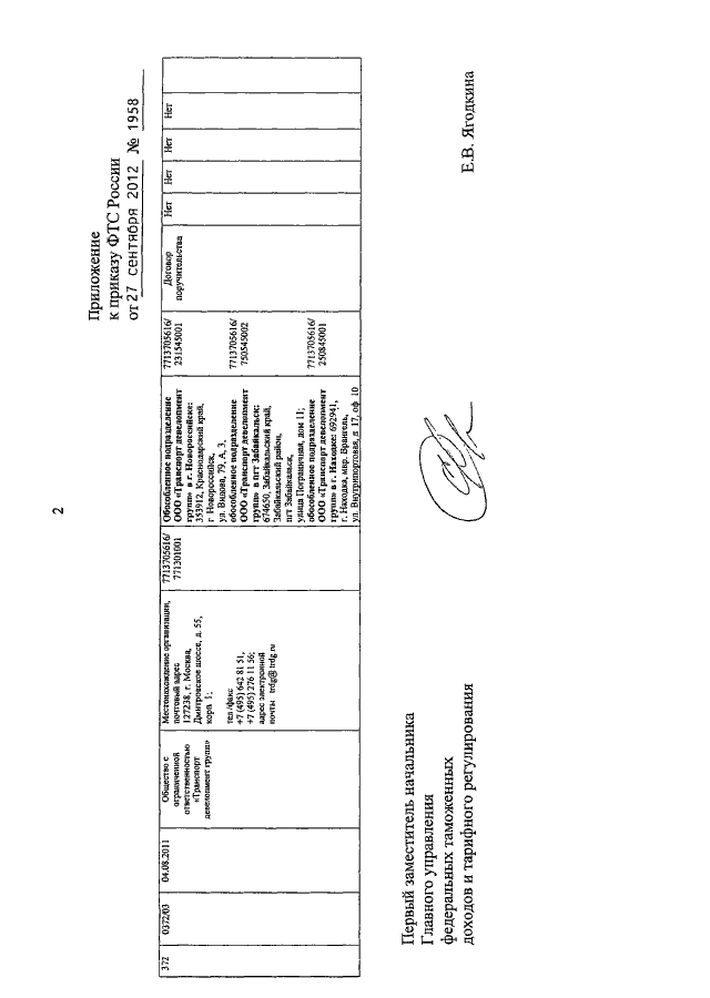 ПРИКАЗ ФТС РФ от 27.09.2012 N 1958