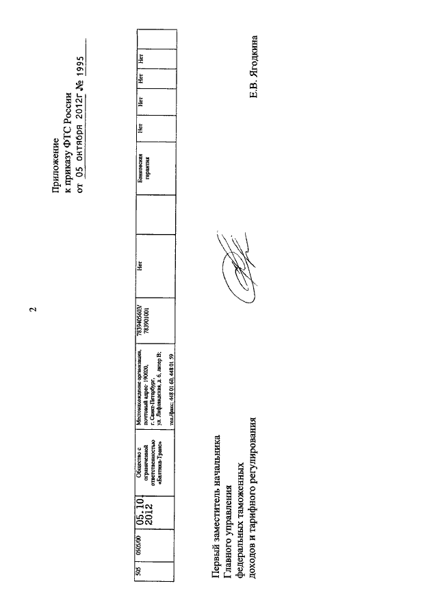 ПРИКАЗ ФТС РФ от 05.10.2012 N 1995