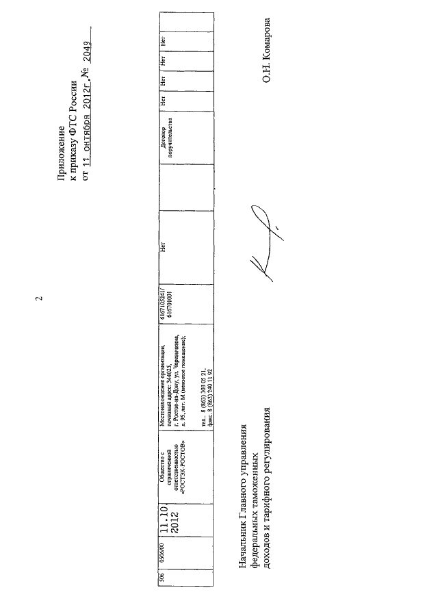 ПРИКАЗ ФТС РФ от 11.10.2012 N 2049