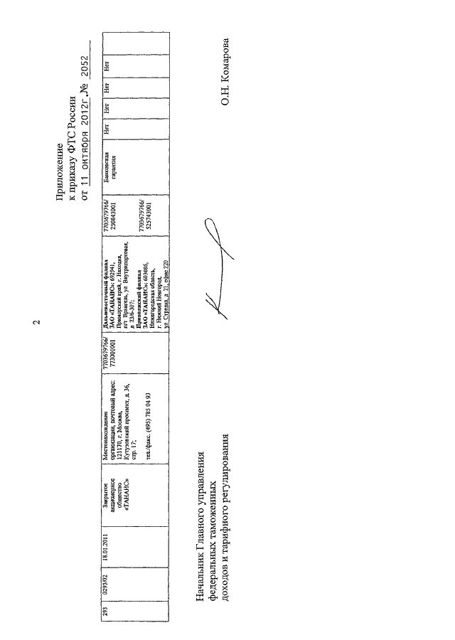 ПРИКАЗ ФТС РФ от 11.10.2012 N 2052
