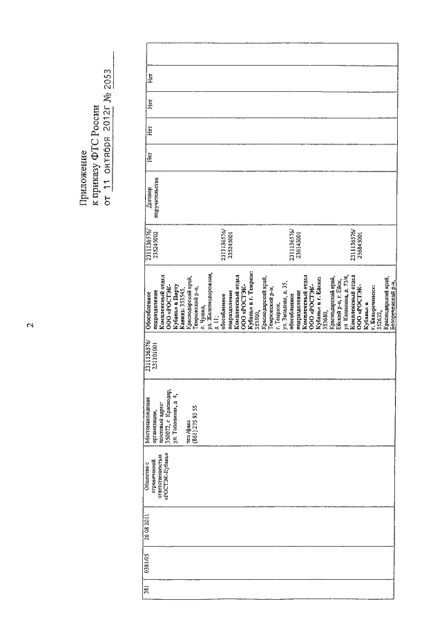 ПРИКАЗ ФТС РФ от 11.10.2012 N 2053