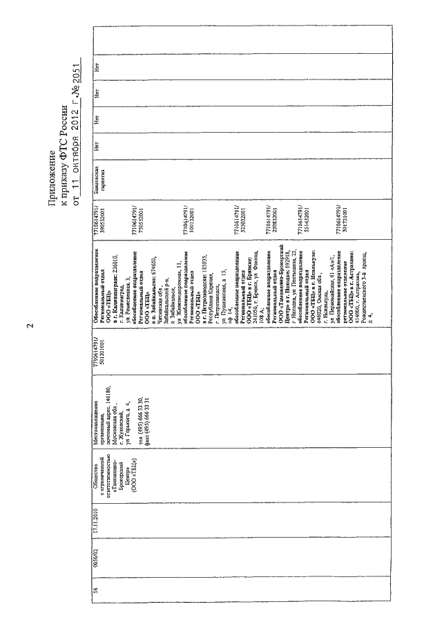 ПРИКАЗ ФТС РФ от 11.10.2012 N 2051