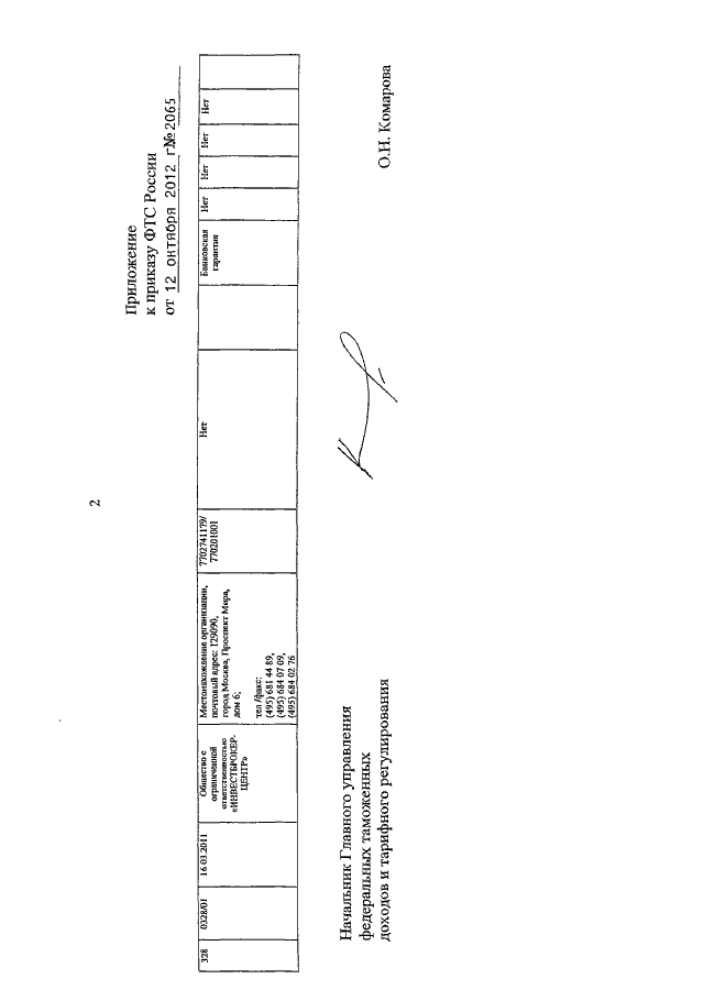 ПРИКАЗ ФТС РФ от 12.10.2012 N 2065