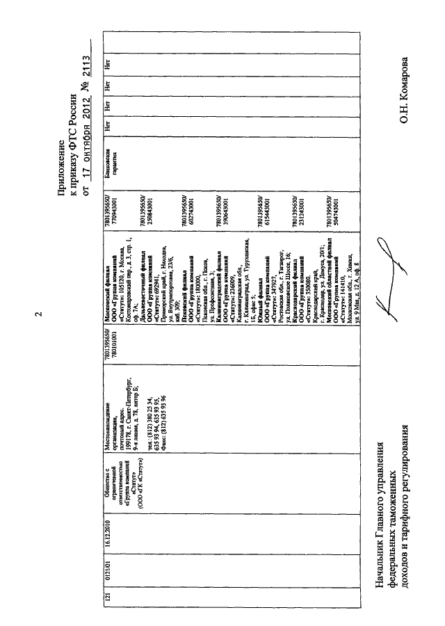 ПРИКАЗ ФТС РФ от 17.10.2012 N 2113