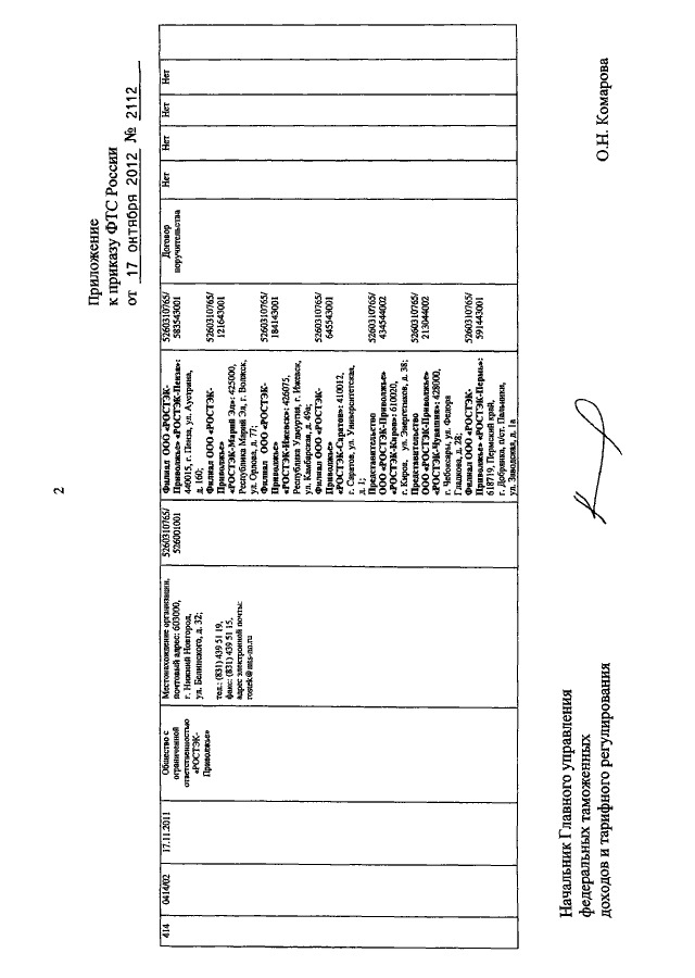 ПРИКАЗ ФТС РФ от 17.10.2012 N 2112