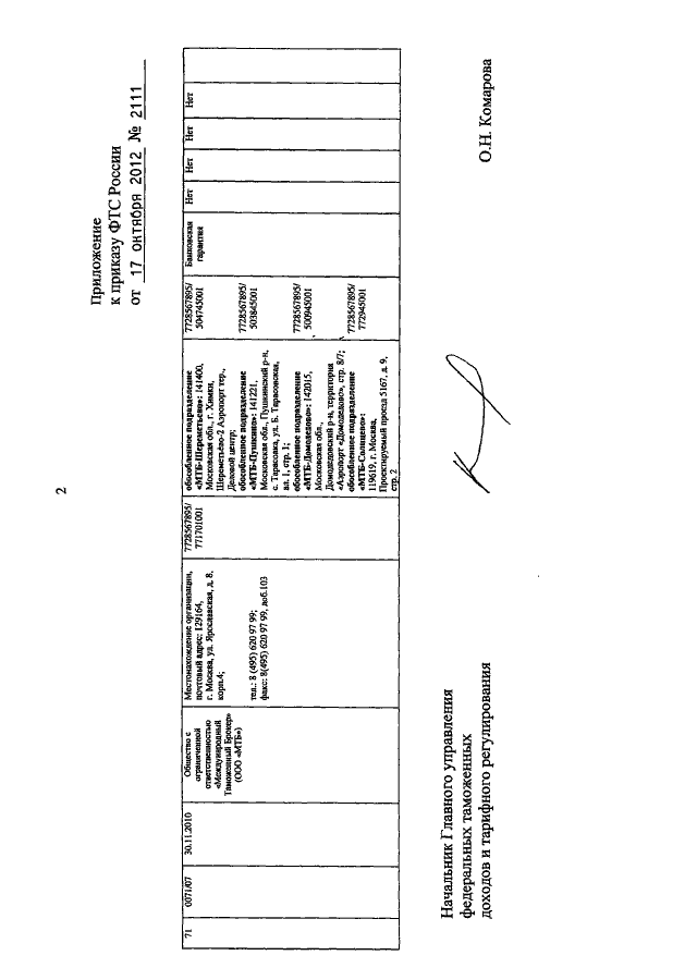 ПРИКАЗ ФТС РФ от 17.10.2012 N 2111