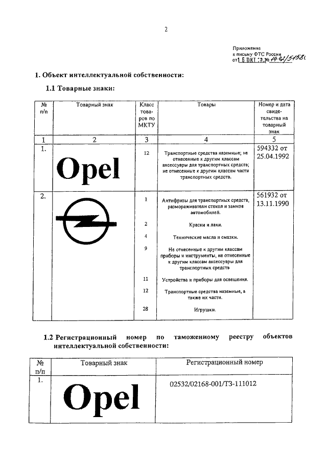 "О ТОВАРНЫХ ЗНАКАХ КОМПАНИИ "ОПЕЛЬ СПЕШИАЛ ВИЭКЛС ГМБХ"