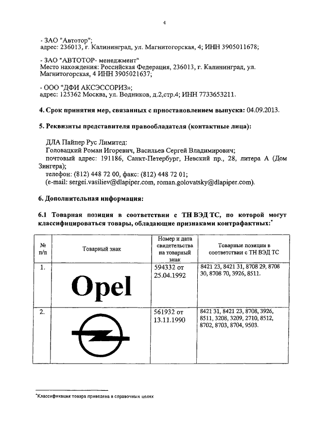 "О ТОВАРНЫХ ЗНАКАХ КОМПАНИИ "ОПЕЛЬ СПЕШИАЛ ВИЭКЛС ГМБХ"