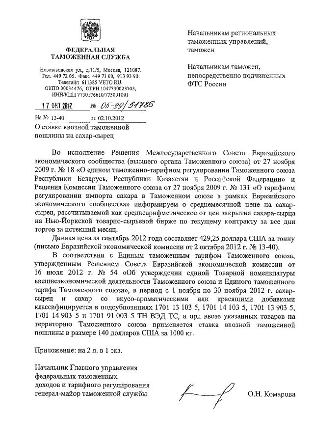 (вместе с ПИСЬМОМ Комиссии таможенного союза ЕврАзЭс от 02.10.2012 N 13-40)
