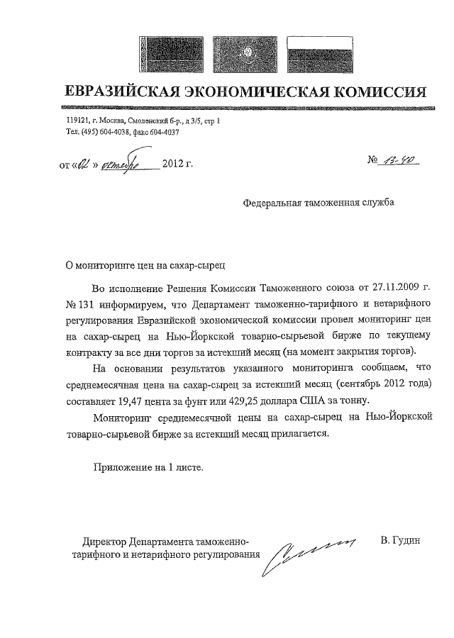 (вместе с ПИСЬМОМ Комиссии таможенного союза ЕврАзЭс от 02.10.2012 N 13-40)