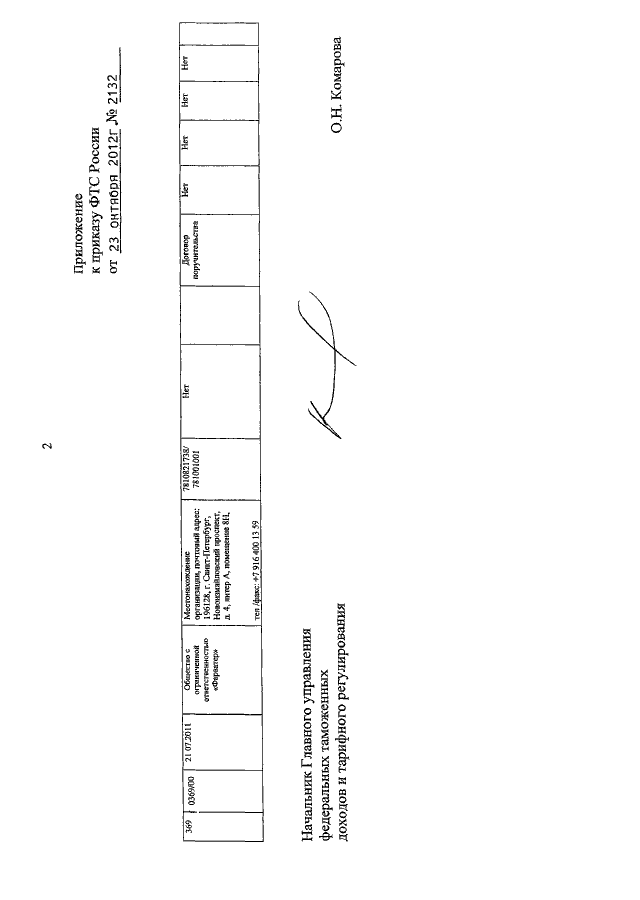 ПРИКАЗ ФТС РФ от 23.10.2012 N 2132