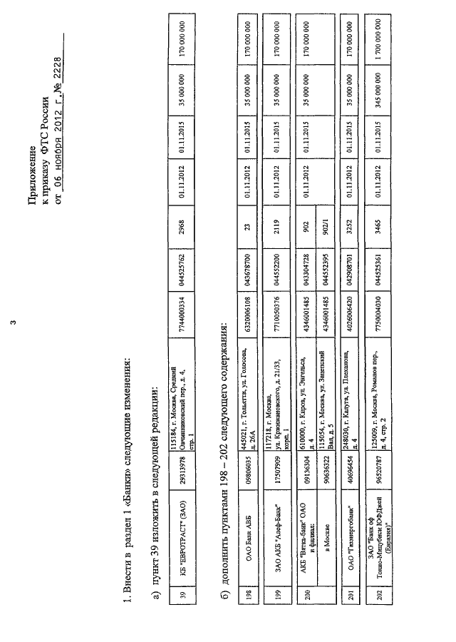 ПРИКАЗ ФТС РФ от 06.11.2012 N 2228