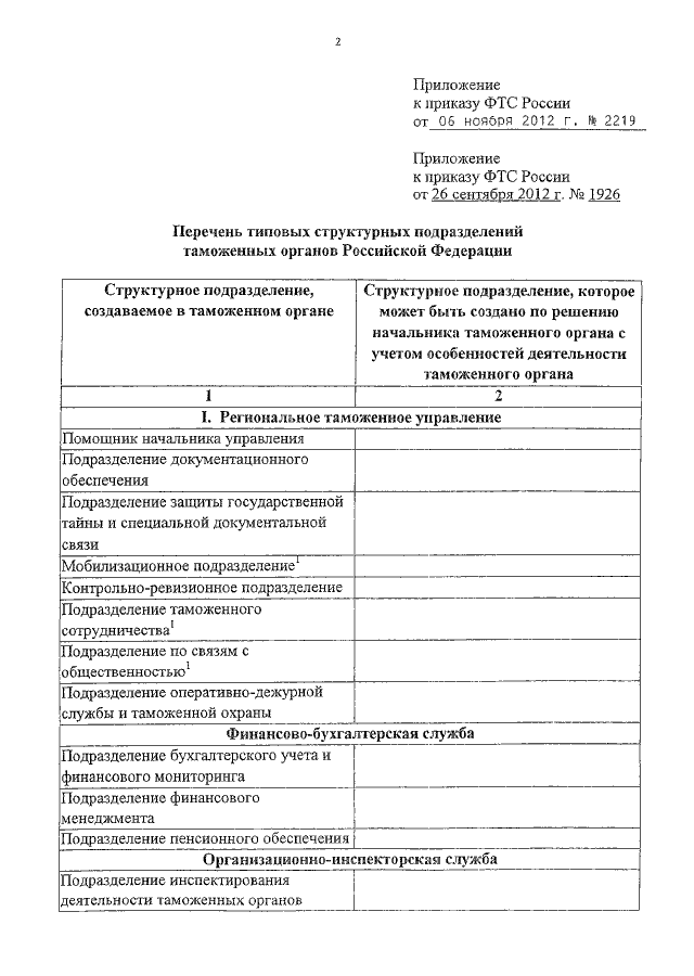 ПРИКАЗ ФТС РФ от 06.11.2012 N 2219