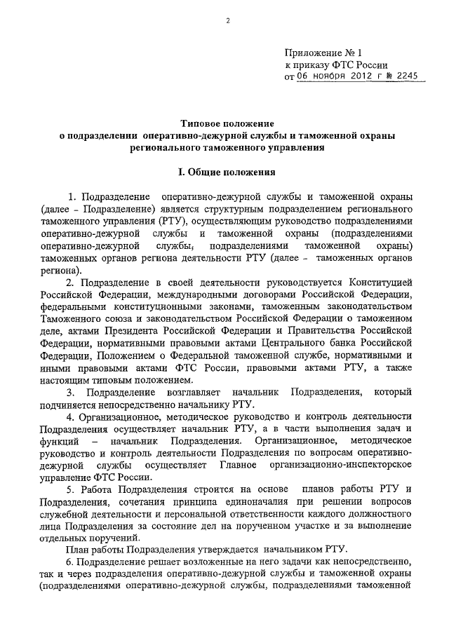 ПРИКАЗ ФТС РФ от 06.11.2012 N 2245