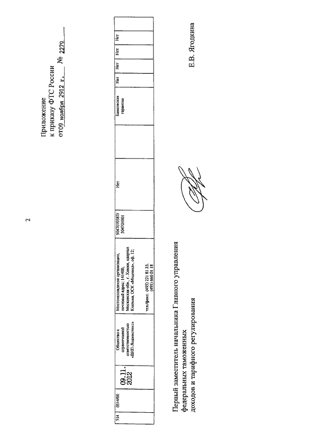 ПРИКАЗ ФТС РФ от 09.11.2012 N 2279