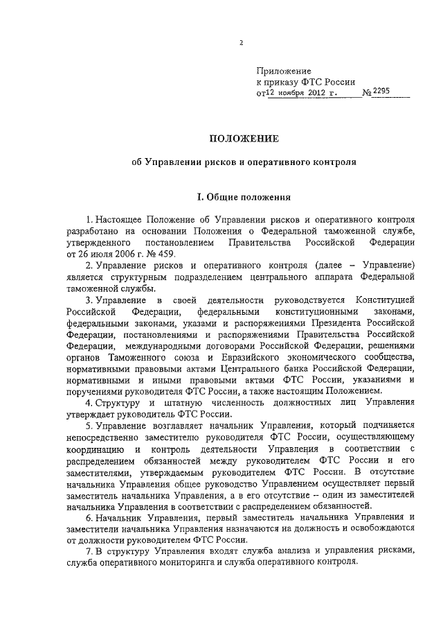 ПРИКАЗ ФТС РФ от 12.11.2012 N 2295