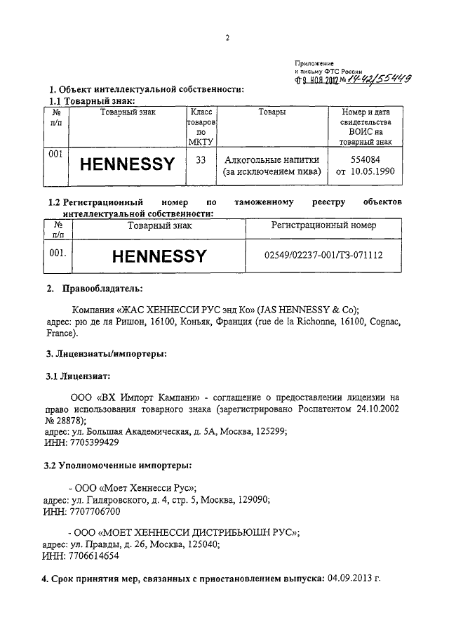 "О ТОВАРНОМ ЗНАКЕ "HENNESSY"
