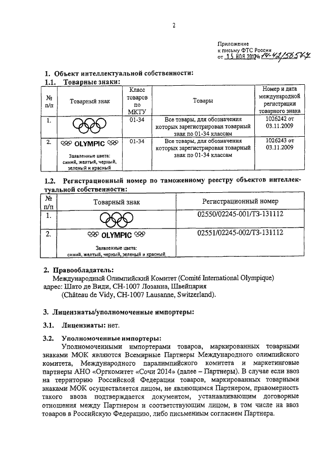 "О ТОВАРНЫХ ЗНАКАХ МЕЖДУНАРОДНОГО ОЛИМПИЙСКОГО КОМИТЕТА"