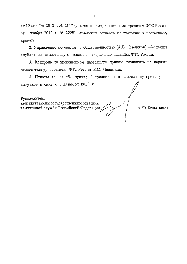 ПРИКАЗ ФТС РФ от 15.11.2012 N 2320