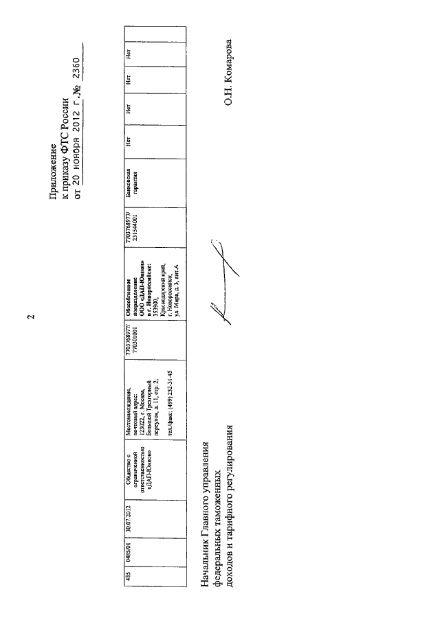 ПРИКАЗ ФТС РФ от 20.11.2012 N 2360