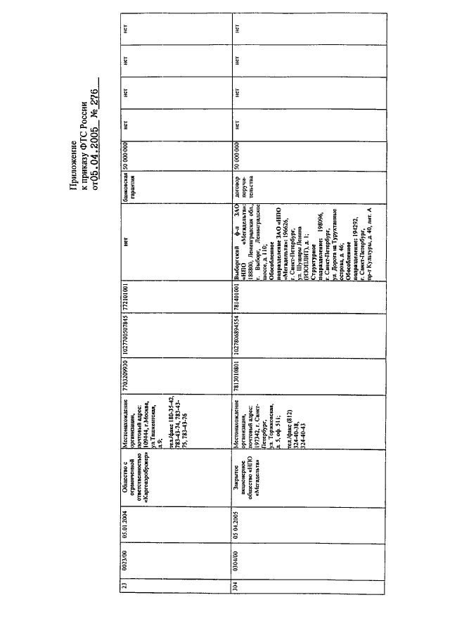 ПРИКАЗ ФТС РФ от 05.04.2005 N 276
