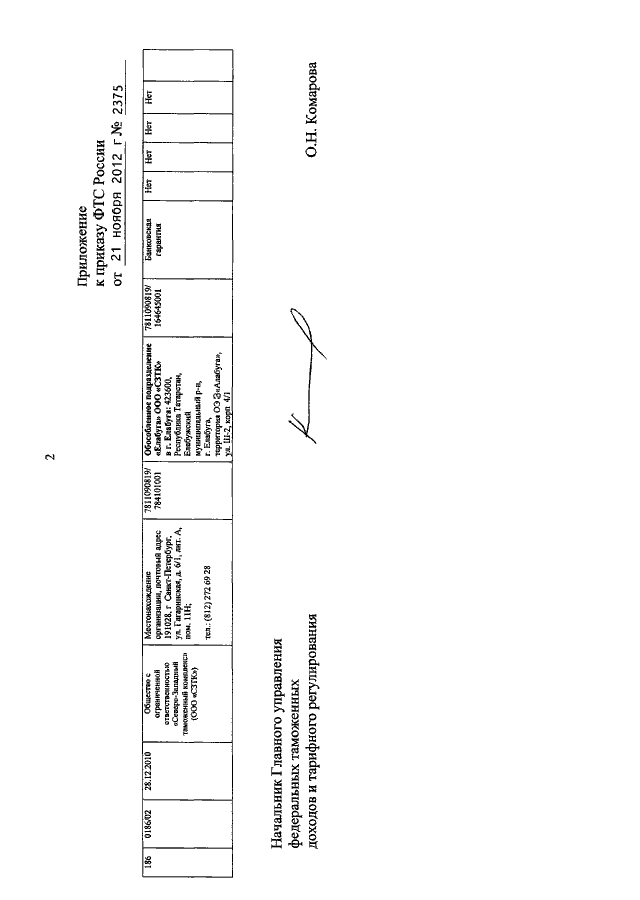 ПРИКАЗ ФТС РФ от 21.11.2012 N 2375