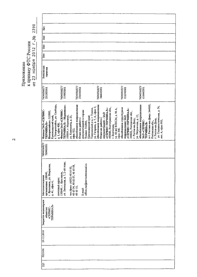 ПРИКАЗ ФТС РФ от 23.11.2012 N 2398
