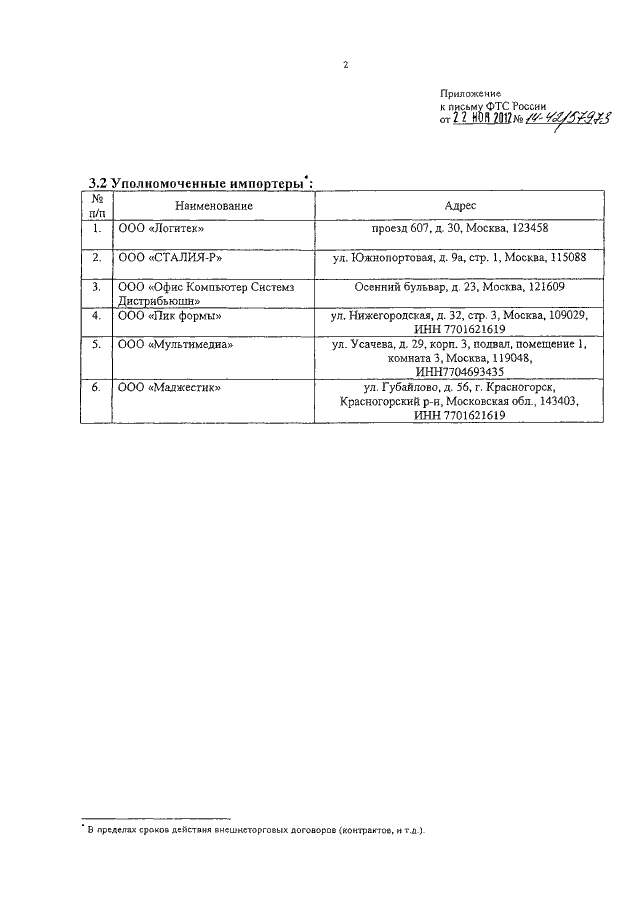 ПИСЬМО ФТС РФ от 22.11.2012 N 14-42/57973
