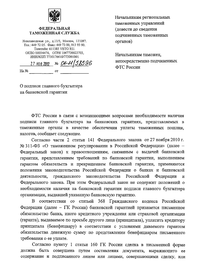 "О ПОДПИСИ ГЛАВНОГО БУХГАЛТЕРА НА БАНКОВСКОЙ ГАРАНТИИ"