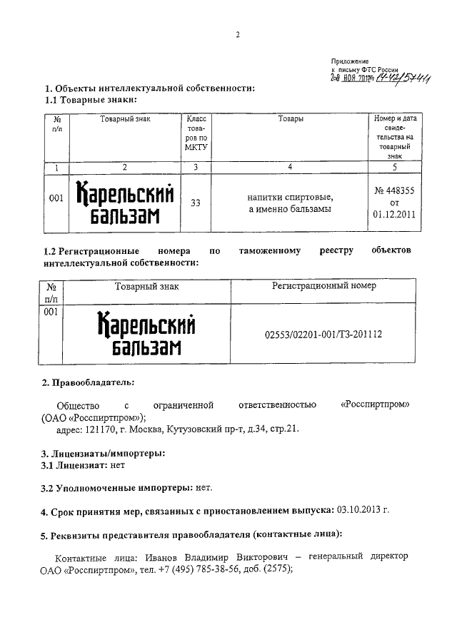"О ТОВАРНОМ ЗНАКЕ ОАО "РОССПИРТПРОМ"