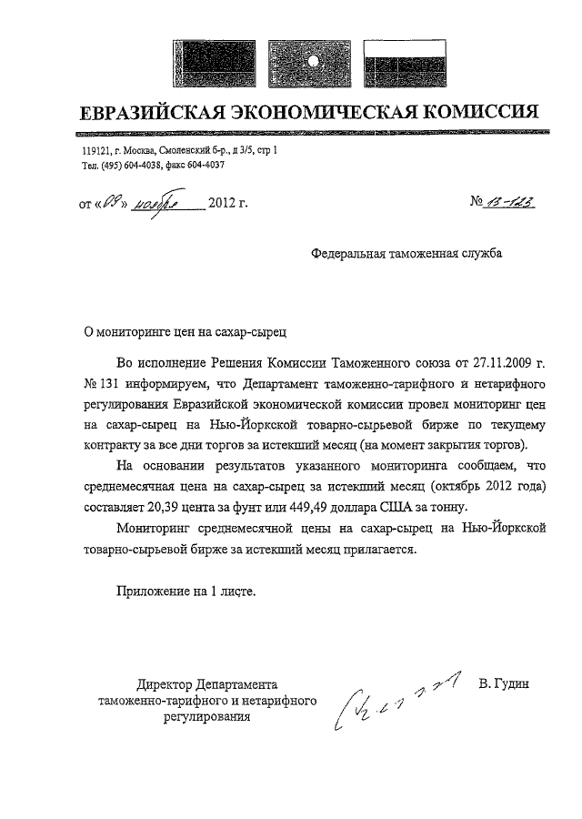 (вместе с ПИСЬМОМ Евразийской экономической комиссии от 09.11.2012 N 13-123)