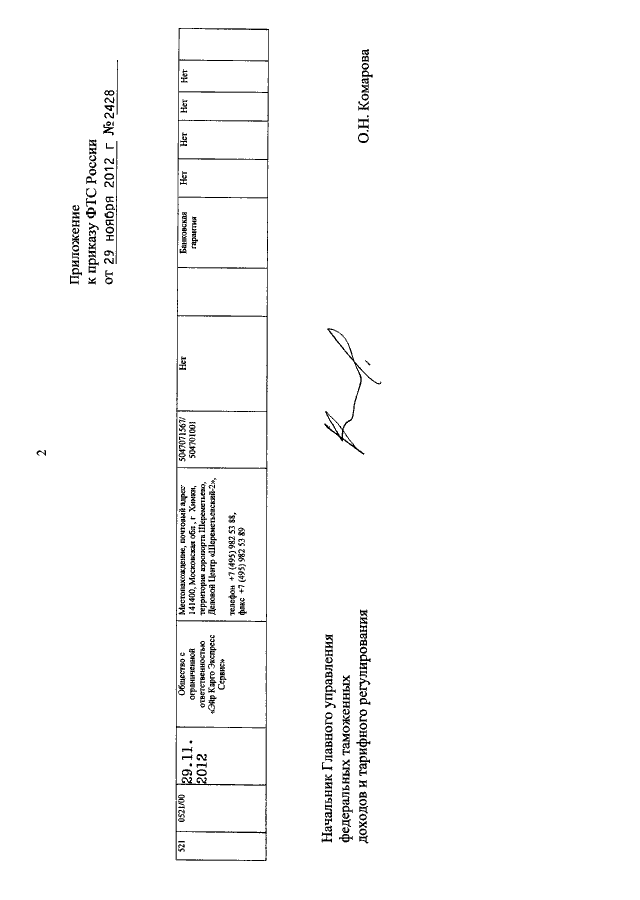 ПРИКАЗ ФТС РФ от 29.11.2012 N 2428
