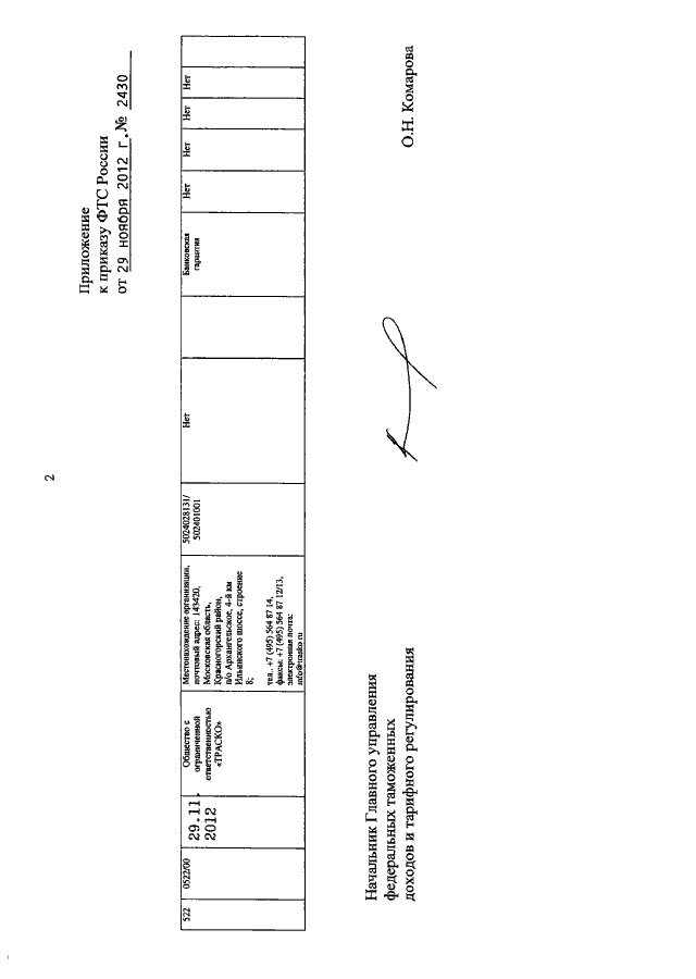 ПРИКАЗ ФТС РФ от 29.11.2012 N 2430