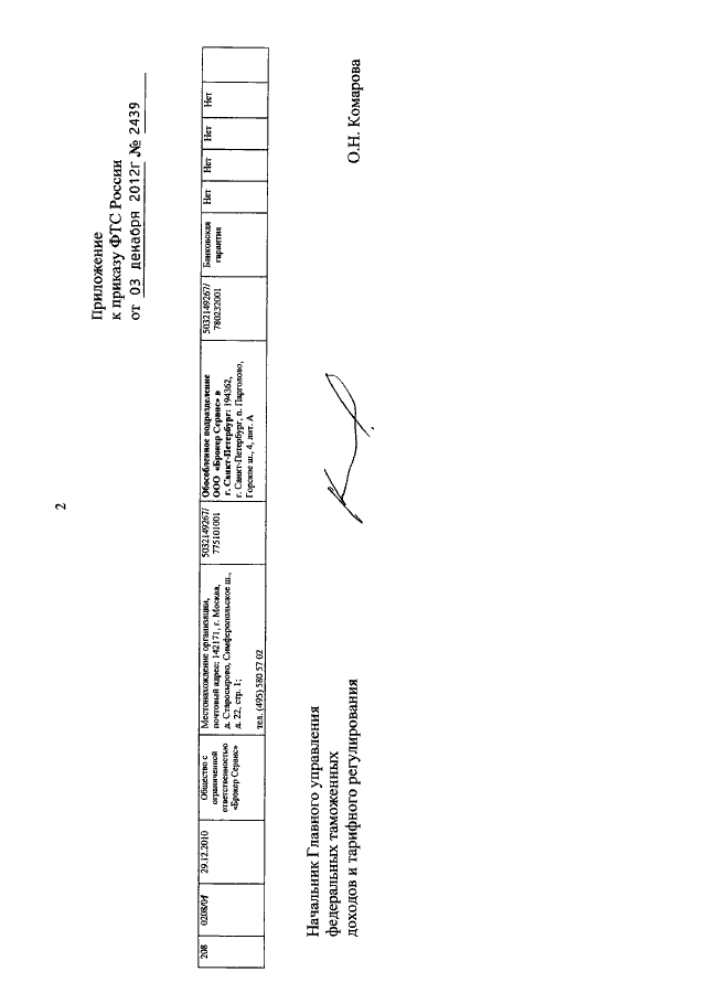 ПРИКАЗ ФТС РФ от 03.12.2012 N 2439
