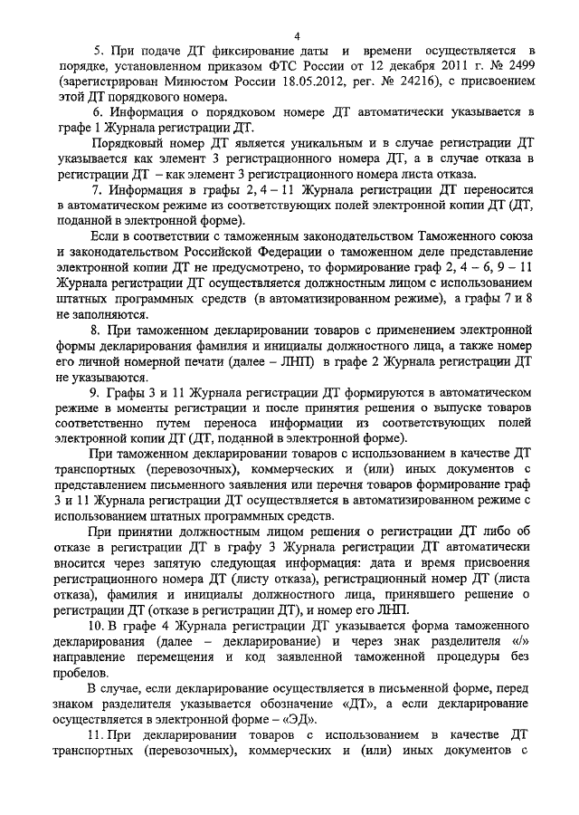 ПРИКАЗ ФТС РФ от 03.12.2012 N 2443