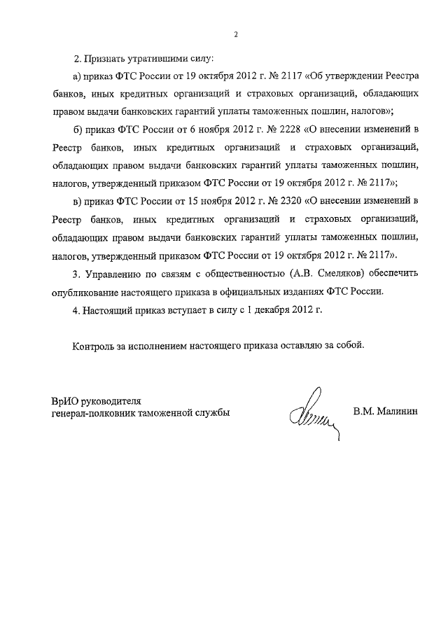 ПРИКАЗ ФТС РФ от 04.12.2012 N 2444