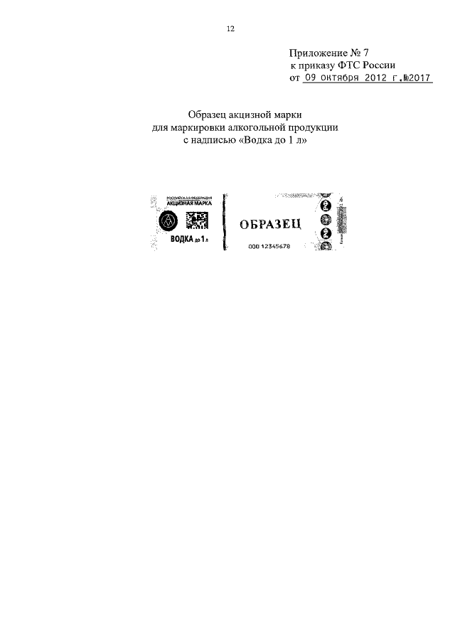 ПРИКАЗ ФТС РФ от 09.10.2012 N 2017