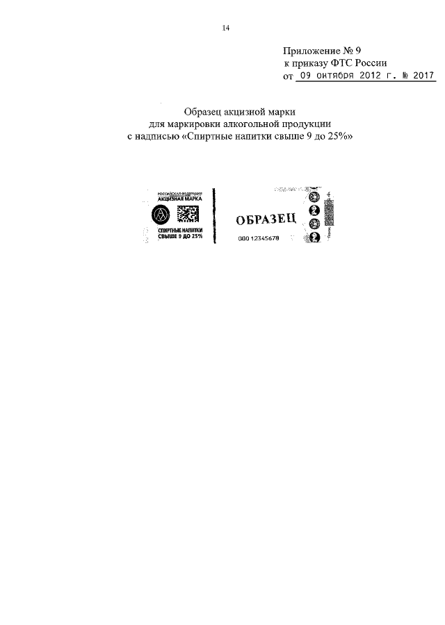 ПРИКАЗ ФТС РФ от 09.10.2012 N 2017